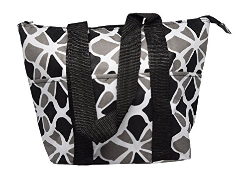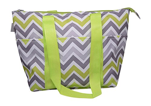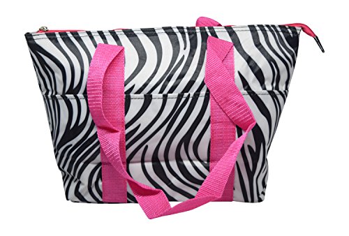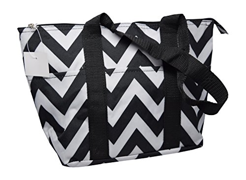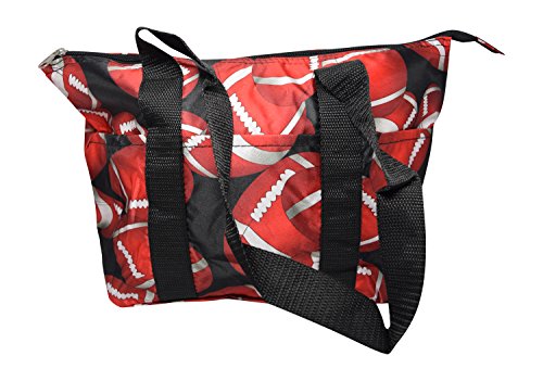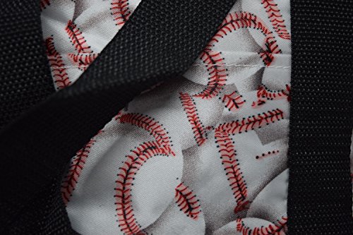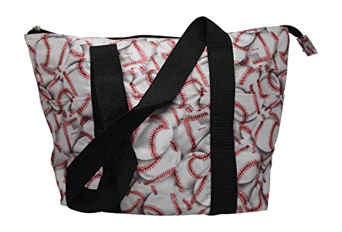 Large Reusable Zippered Top Insulated Lunch Bag (White Baseball)