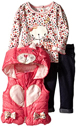 -. Title : Nannette Baby Girls' 3 Piece Nylon Vest Set with Kitty Pullover