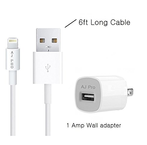 -. Title : AJ Pro (TM) 6ft Extra long Extension White 8 Pin USB Sync Cable Power Cord with 1 Amp Wall charger for Apple iPhone 6S, 6, 6 Plus, 5S, 5C, 5 (compatible with iOS 9 and 9.1) [Certified]