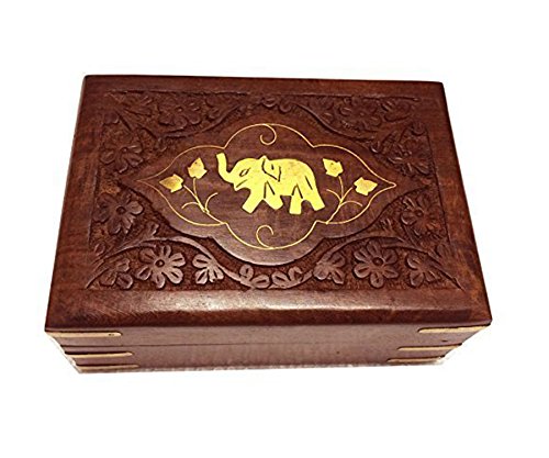 Special valentine day gift, Handmade Wooden jewelry Box Center Elephant Carving Work, Keepsake Box, Vintage Box, Brown Color Jewelry Box, Multipurpose Keepsake Storage Box 6 X 4 Inch