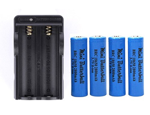 4Pcs 18650 2800mAh Li-ion Rechargeable Battery, Mini Butterball 3.7V Li-ion Batteries with Charger for Flashlight Headlamp