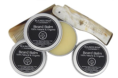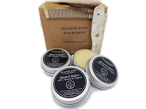 Men's Gift Box Set 2 Beard Balm 1 Beard Oil Kit & Natural Wooden Comb Organic. Moustache By Hamilton Jackson. Best Beard Softening Conditioner...