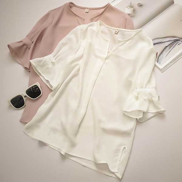 | 商品名 | フレアスリーブ シフォンブラウス とろみシャツ 五分袖 |