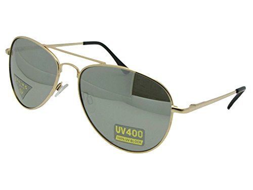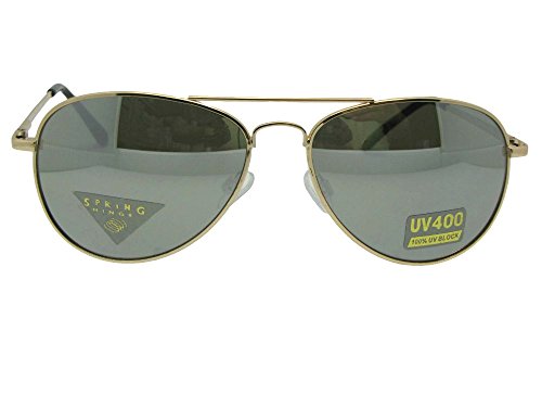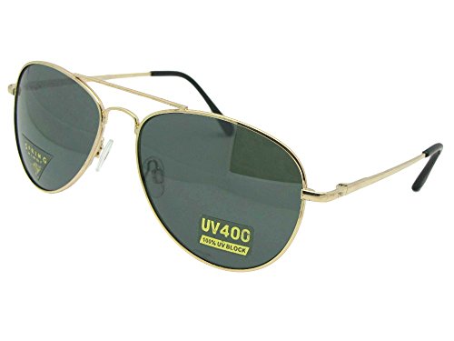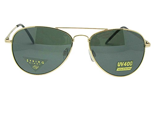Product Description Metal frame aviator style sunglasses with UV400 greenish gray non polarized lenses. The frame is light weight, fits a small to medium size best and has spring temples for added comfort. Measurements 5 1/4 Inches Wide x 1 3/4 Inches Height 0