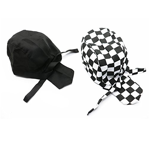 Buorsa Pirates Chef Cap Professional Kitchen Catering Ribbon Cap Turban , 2Pcs