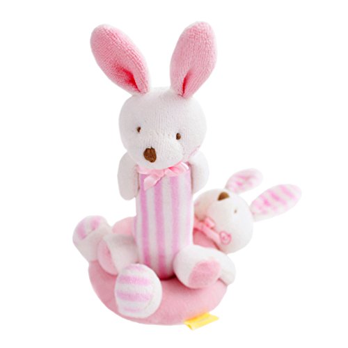 COMFORTABLE:The medium sized handhold part is suitable for baby's grasp,it makes fantastic sound when shaking and pinch ,which promotes the growth and development of kids!