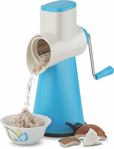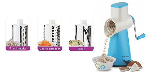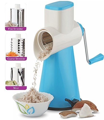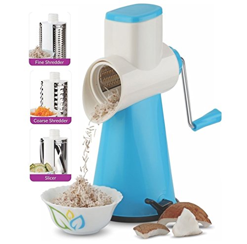Chefzone Vegetable Mandoline Slicer, Vegetable Fruit Cutter Cheese Shredder Rotary Drum Grater with 3 Stainless Steel Rotary Blades and Suction Cup Feet (Blue)