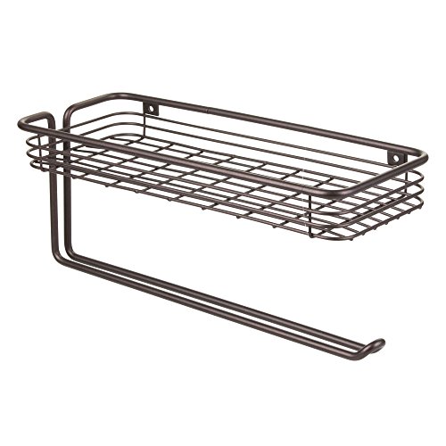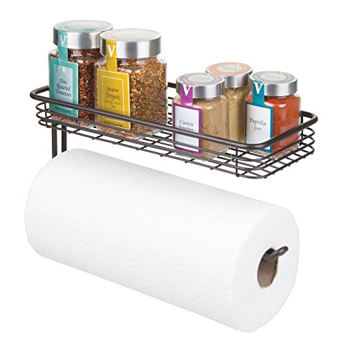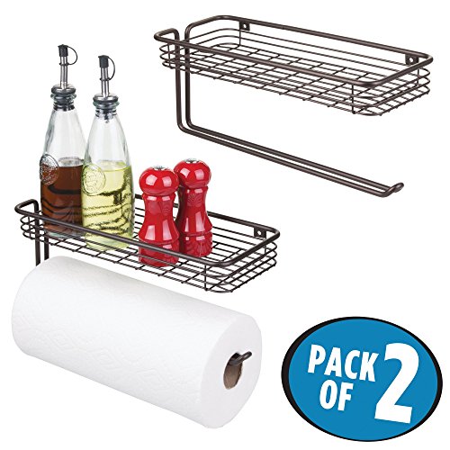 mDesign Wall Mount Paper Towel Dispenser with Top Storage Shelf for Kitchen - Pack of 2, Bronze