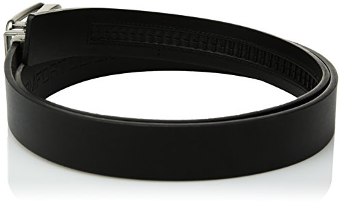Product Description You've never worn a more comfortable belt. Genuine leather belt with brushed chrome buckle fits waist 28 -48 with micro-adjustable 32-position ratcheting track system for custom fit. Can adjust throughout the day. 0