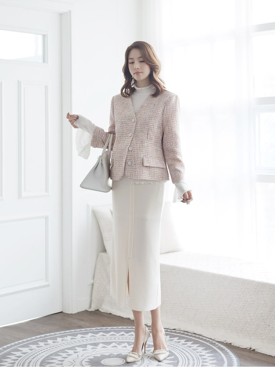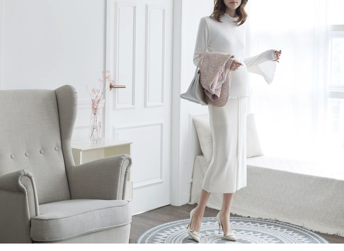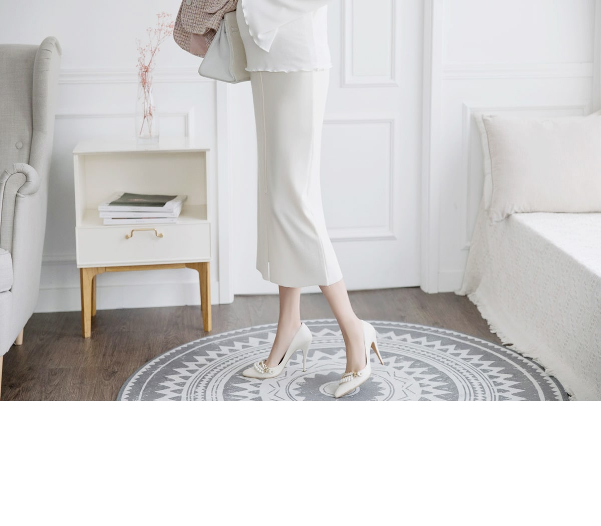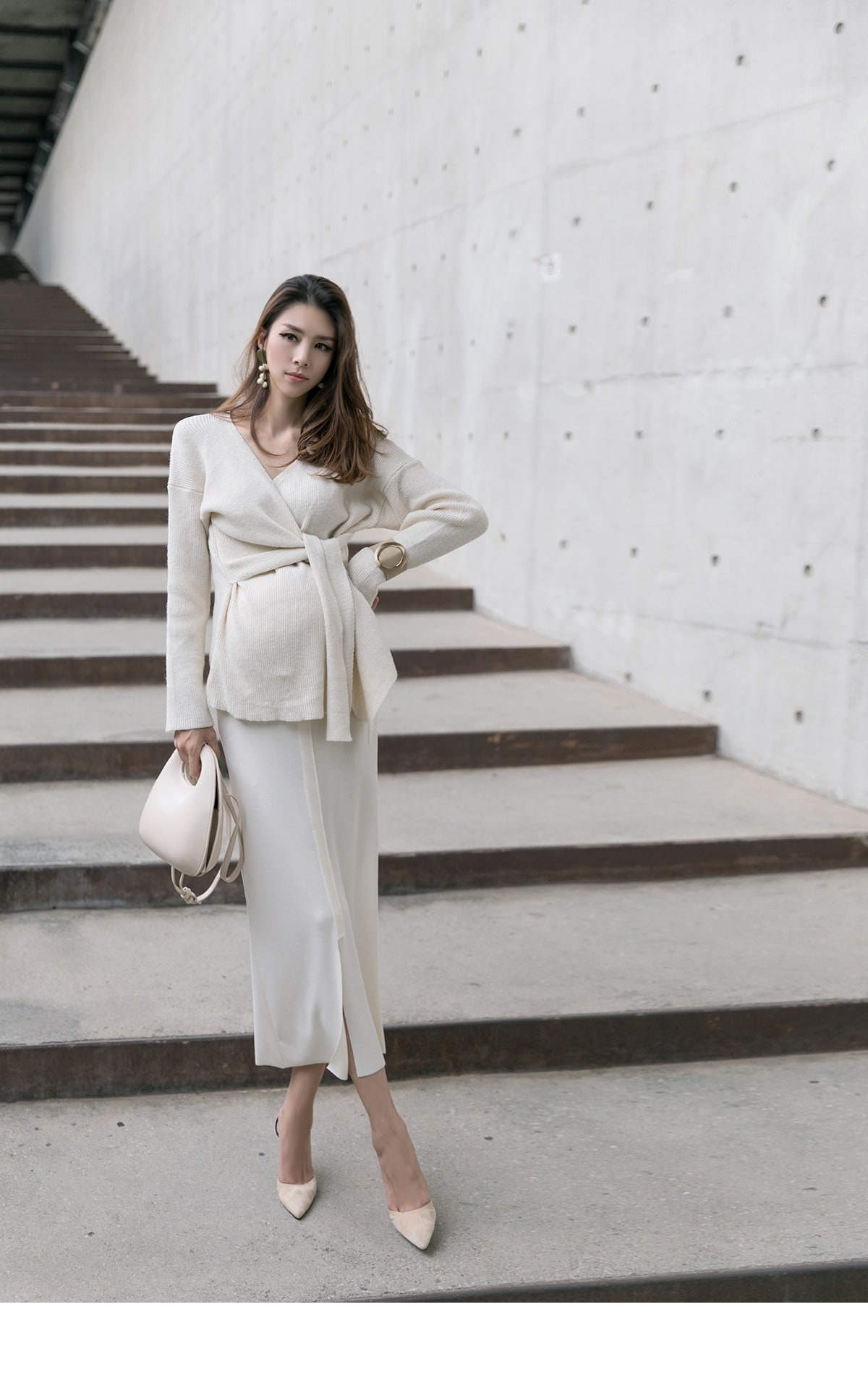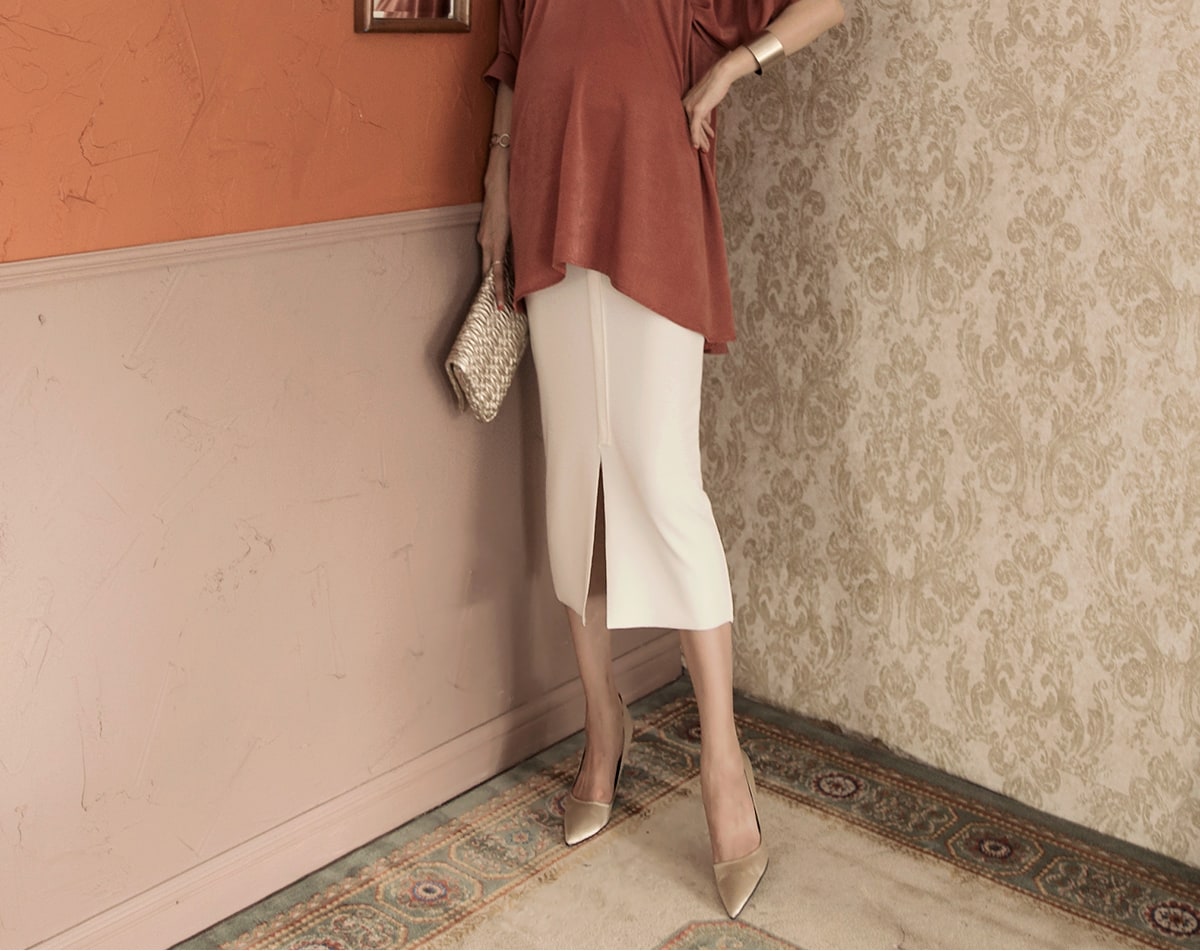 SK-453 태스 롱 트임 스커트(55차리오더) Ivory