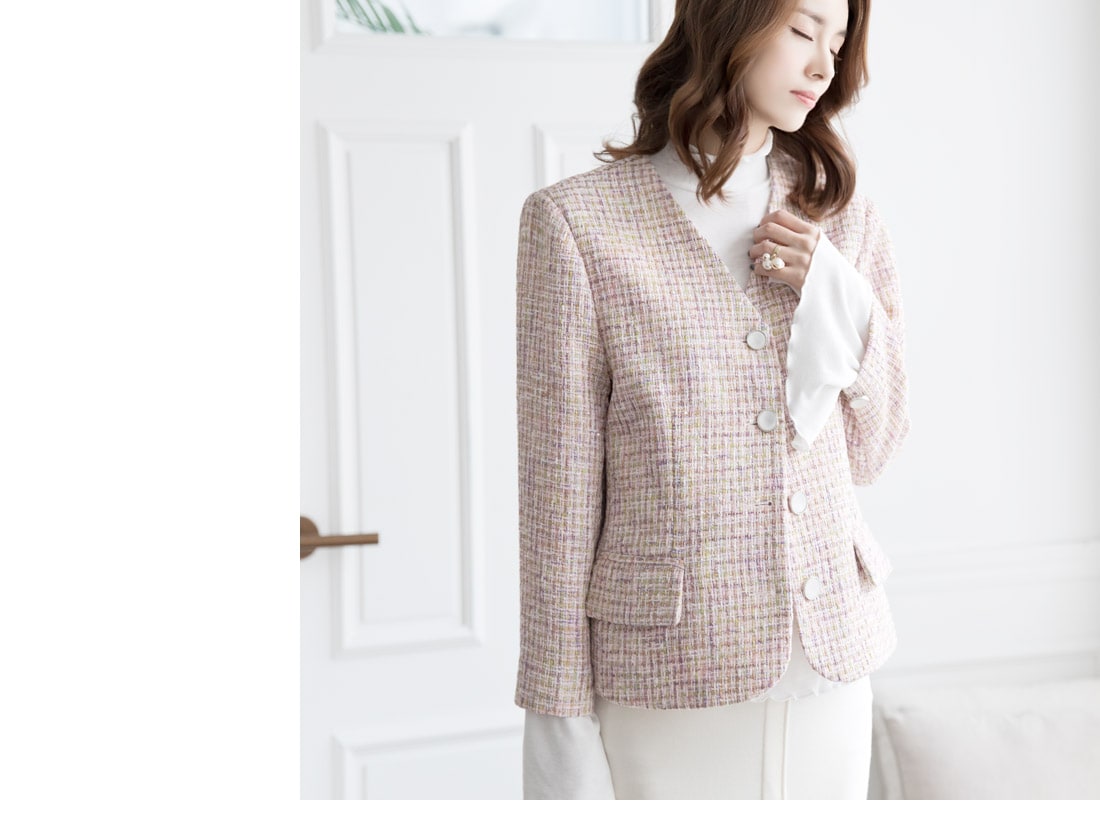 B-973 펄 브이넥 퍼브라인 블라우스 Brick