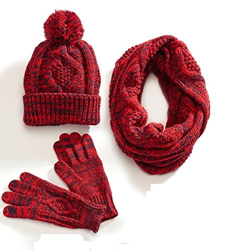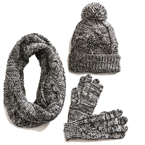 Product Description Winter Set Includes Three (3) Items Cable Knit Infinity Scarf, Stocking Hat with Pom Pom, and Gloves 0