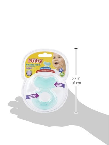 The new Nuby Teethe-eez super soft silicone teether’s unique textured design provides comfort to baby’s delicate gums. It provides stimulus to the lips and tongue and assists in the eruption of teeth by gently massaging infant's gums. Plus, it includes a hygienic case that is great for on-the-go. BPA Free.Feature