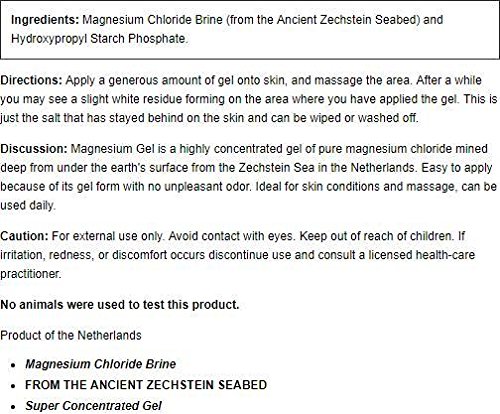 Studio : Life-Flo Publisher : Life-Flo Binding : Health and Beauty Product Description Magnesium gel is a highly concentrated gel of pure magnesium chloride mined deep under the earth’s surface from the zechstein sea in the Netherlands. Easy to apply because of its gel form ideal for skin conditions and massage can be used daily. 0
