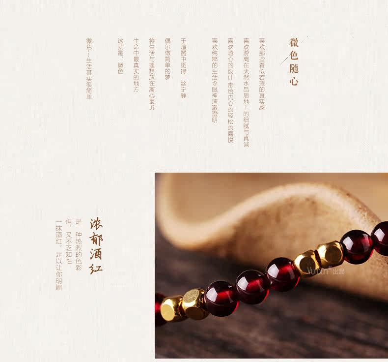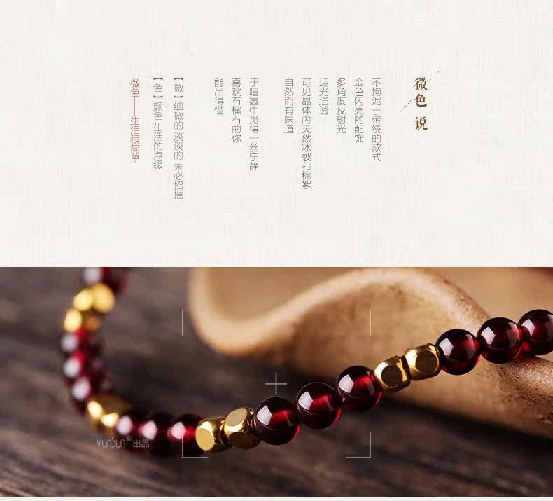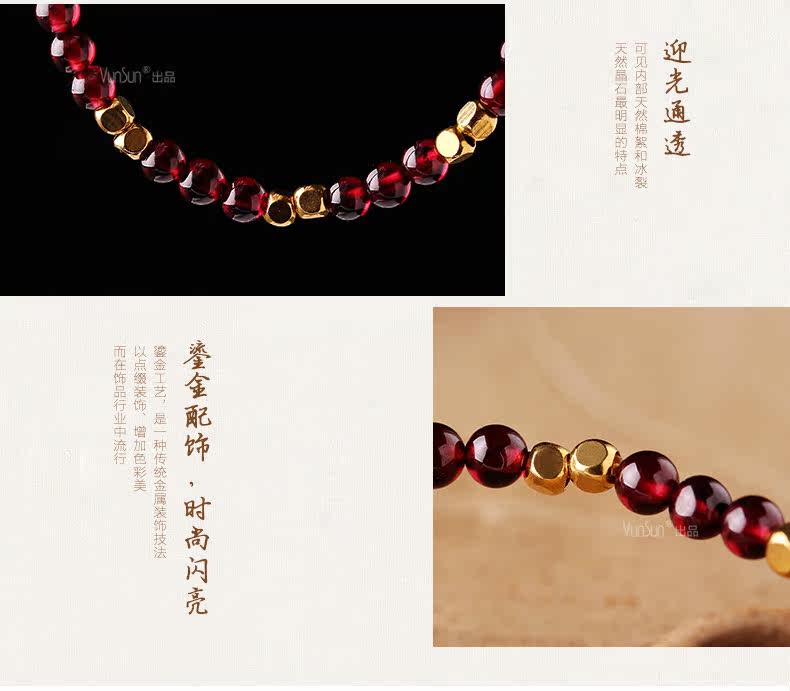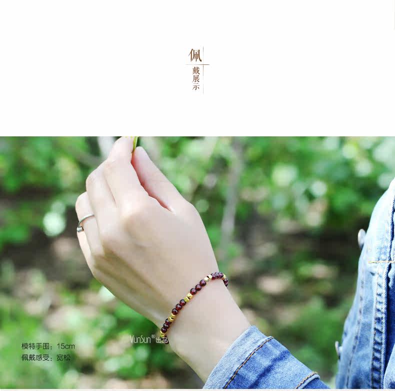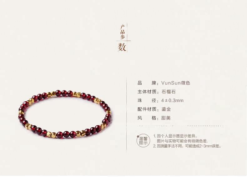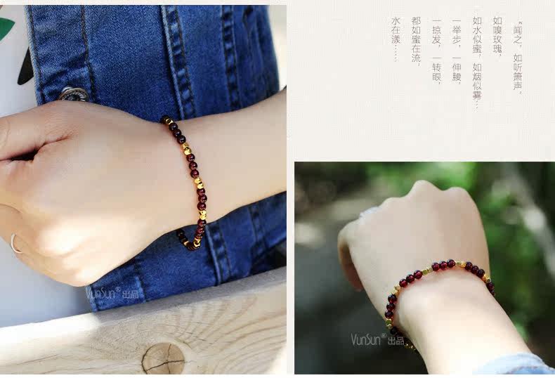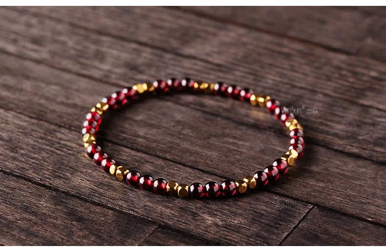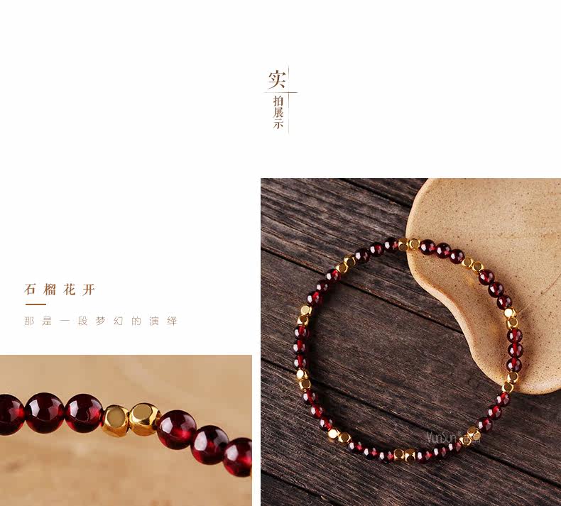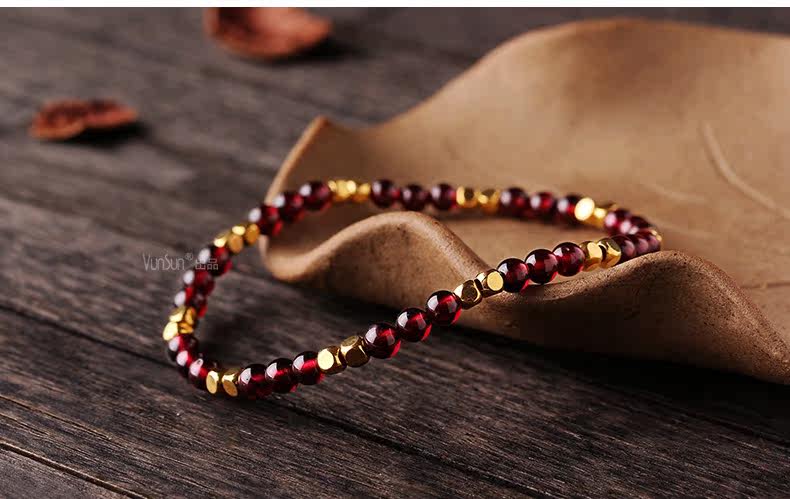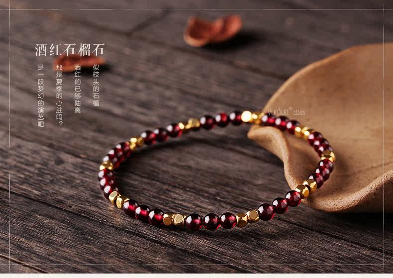 天然酒红石榴石手链女单圈水晶手串女款纤细简约文艺饰品