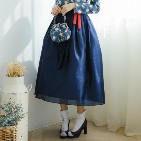 자수처럼 입체적인 문양이 표현되어 은은하게 고급스러운 한복 특유의 매력이 담겨있는 허리치마 입니다.