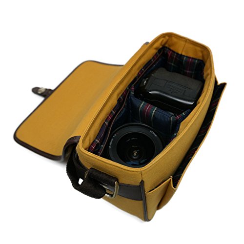 -. Feature : ヴィンテージ風のカラフルなLOCKWOODは、撥水加工のキャンバス生地と本革で作られています。一眼レフカメラ1台と1本のレンズ、iPad mini などタブレットも収納可能です。 / Exterior Dimensions : W25.0 x H18.0 x D12.0 (cm) / Interior Dimensions : W24.0 x H17.0 x D10.5 (cm) / Color:Yellow / Weight : 0.7kg