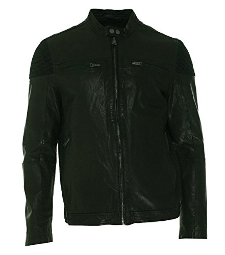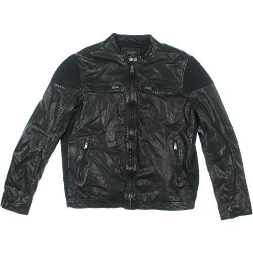 Product DescriptionRogue state leather motorcycle jacket with double snap at collar.0