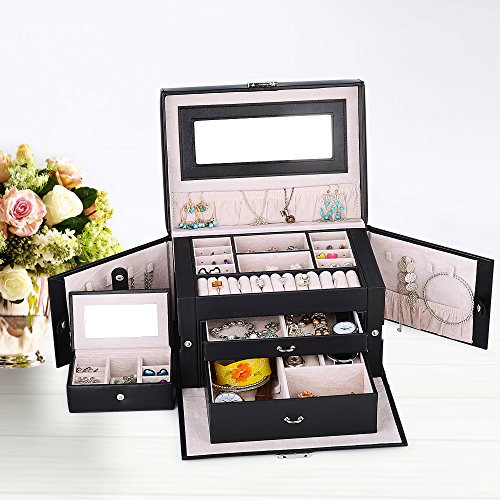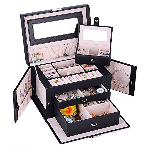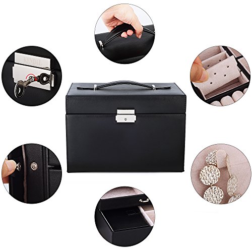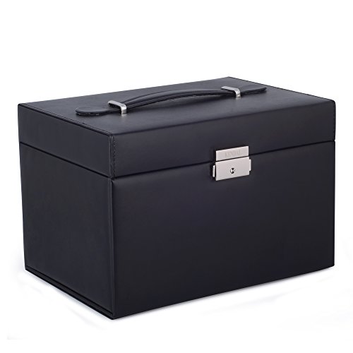 Kendal Large Leather Jewelry Box / Case / Storage / Organizer With Travel Case and Lock (Black)