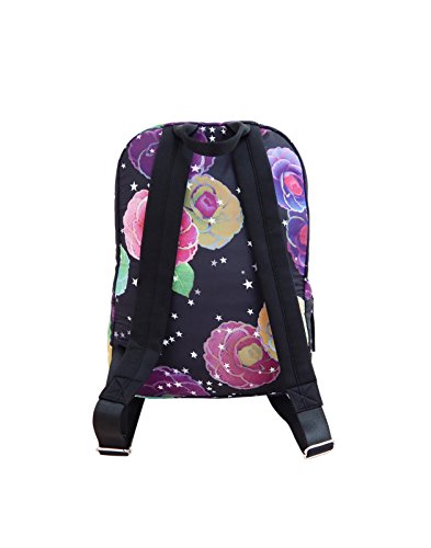 Product DescriptionLightweight nylon backpack in starry floral print. Main zip compartment contains a side zip pocket and two slide pockets. Outside features a front zippered utility pocket. Padded back, adjustable shoulder straps and top handle.0