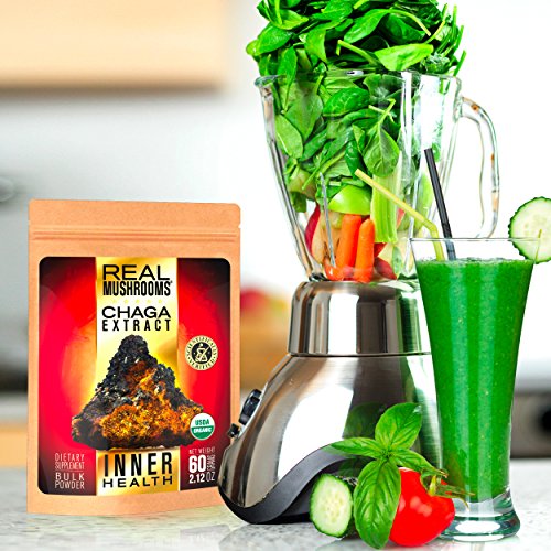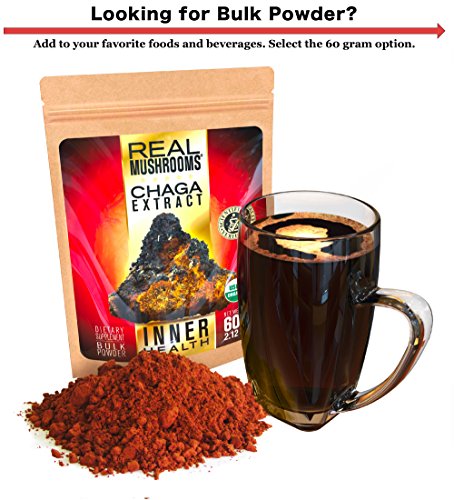 -. Title : Chaga Mushroom Extract by Real Mushrooms - Certified Organic - 60g Bulk Powder - Wild Harvested - Use with Shakes, Smoothies, Coffee and Tea