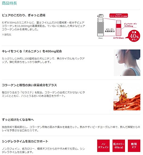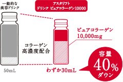 わずか30mLのミニボトルに、富士フイルムだけの高純度・低分子ピュアコラーゲンを10,000mgの高濃度配合。ていねいに抽出した希少なピュアコラーゲンのみを使用しました。