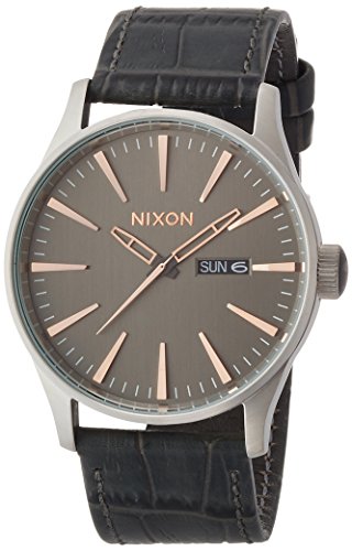【NIXON】닉슨의 시계.클래시컬 또한 고급감 넘친다디자인의 THE SENTRY LEATHER(세인트 리 레더).스타일리쉬한 분위기로,슈트 스타일은 물론,패션 악세사리로서도 어른의 품위가 있는 연출을 가능으로 줍니다.다이얼 등의디자인도 참으로 미려.긴 바 모양의 인덱스,분침과 단침의 포인트 컬러나 틈새를 만듦의디자인등,세세한 곳까지 계산되어 다한 사양.밴드는 레더를 사용하고, 편리한 날짜 표시 기능도 탑재.사용하기 쉬어 씬을 선택하지 않는 심플함 중에(속에) 브랜드다운 장난기(놀고 싶은 마음)을 떠나 느낌 없어 세웠다, 확실히 역사적인 명기입니다.