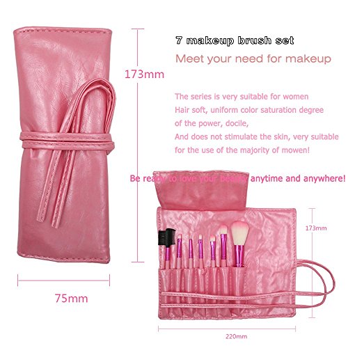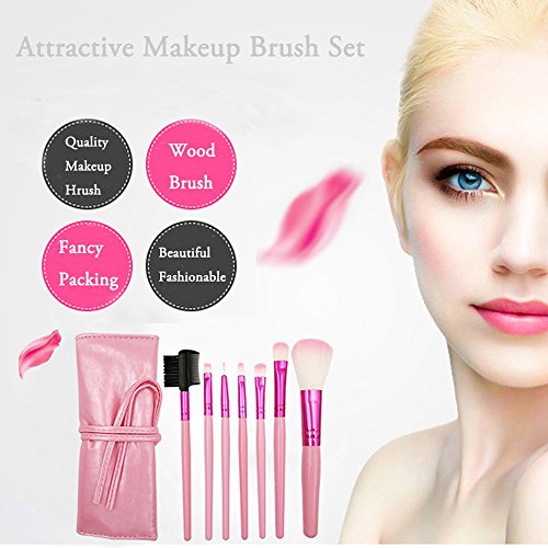 Makeup Brushes - AINATU 7Pcs Fantasy Set Foundation Powder Eyeshadow Kits Professional Wooden Handle Make up Brushes Set in Pink Case Eyeshadow...