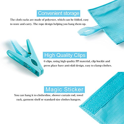 - ADJUSTABLE DESIGN - With magic sticker, you can hang it to clothesline, shower curtain rod, towel rack, garment shelf or standard size clothes hangers.