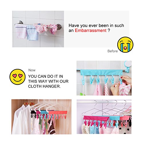 - 6 CLIPS - Provide 6 hanging space for towels, socks, bras, underwear, lingerie, hosiery, swimsuits, sponges and other small things.