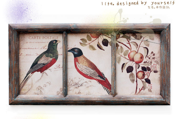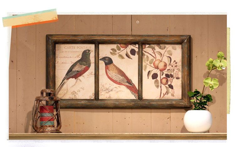 田园美式乡村风格画眉对鸟森林密语做旧实木框画三联壁画壁饰特惠