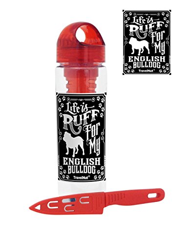 Enjoy 28 oz per bottle of healthy natural fruit or vegetable infused water in this BPA free acrylic tumbler. Enjoy one paring knife with cover to slice & dice your favorite fruit or vegetables-- the knife is dishwasher safe and comes in assorted colors. There's an extra dog decal for you to enjoy too!