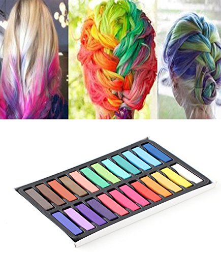 -. Feature : Hair Chalking" is the newest craze in temporary hair color. / Hair Color Chalk is temporary hair color that rubs directly onto your hair, then wash out, it also can be used for drawing. / ALL Hair Chalking are "Hair Invulnerability" ,it does not harm your hair. / Add a flair of color without the long-term commitment of dying, it will fade and will stay in the hair for 1-2 days. / This product is very much like normally chalk, not a professional coloring tools, it's just an entertaining product.