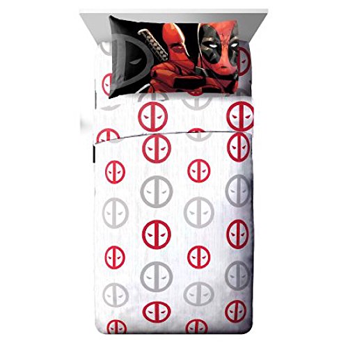 -. Brand : Marvel Comics Inc. -. Color : Black, Red, White, Grey -. EAN : 0658632163817 -. Feature : Deadpool sheets and pillowcase; twin size bedding / Twin fitted sheet (39 in. x 75 in.) / Twin flat sheet (66 in. x 96 in.) / Standard size pillow case (20 in. x 30 in.) / High quality 100% polyester microfiber -. Label : Jay Franco & Sons Inc. -. Manufacturer : Jay Franco & Sons Inc. -. Model : TI1757-Q4/17L34285T -. MPN : TI1757-Q4/17L34285T -. NumberOfItems : 1 -. PackageQuantity : 1 -. PartNumber : TI1757-Q4/17L34285T -. ProductGroup : Home -. ProductTypeName : HOME_BED_AND_BATH -. Publisher : Jay Franco & Sons Inc. -. Size : Twin -. Studio : Jay Franco & Sons Inc. -. Title : Marvel Deadpool Invasion Microfiber Twin Sheet Set -. UPC : 658632163817
