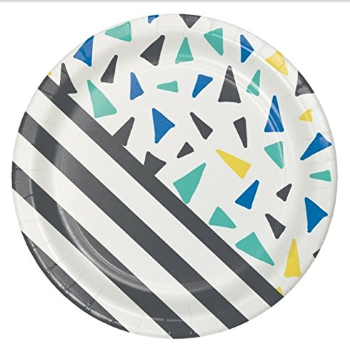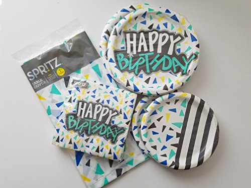 -. Feature : Celebrate your kid's birthday on trend with this fun on trend geo P.R.Int.  Displays festive shapes and designs that will provide a great atmosphere for the memorable occasion.  Set includes: -Geo P.R.Int tablecloth 54x84 inches regtangle -20 ct 9" Dinner Plates -20 ct 7" Dessert Plates -20 ct Napkins