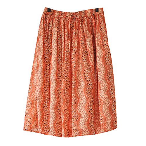 -. Title : スカート ひざ丈 ふんわりスカート ふさふさ リーフ柄 オレンジ
