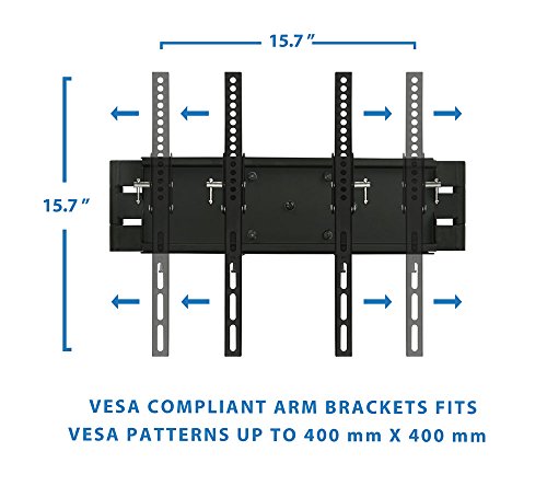 -. Feature : Universal TV wall mounting bracket with adjustable arms fits most of 32-65" LCD/LED/Plasma TVs on the market (even up to some 75 inch TVs) up to VESA 600x400 and 154 lbs (Fits VESA 600x400, 600x300, 600x200, 400X400, 400X300, 400X200, 300X300, 300X200, 200X200, 200X100, 200X150, 100X100, 75X75mm). / Solid heavy-gauge cold steel construction / The articulating dual arms allow a large degree of motion capability / Load up to 135 lbs. High Quality steel construction for maximum support / Standard Mounting Hardware (extra accessory may required) and user manual included
