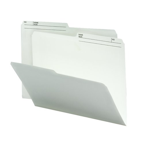 -. Feature : An economical way to file your documents / Tab P.R.Inted with "NAME/NOM; NO." on both sides / An office necessity / Available in a variety of paper weights and colors