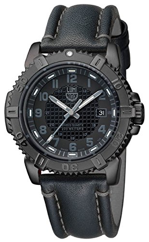 -. Title : Luminox Mariner Blackout Black Dial Black Leather Strap Mens Watch 6251.BO