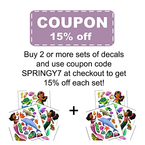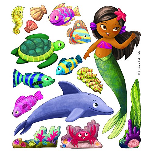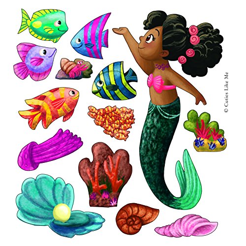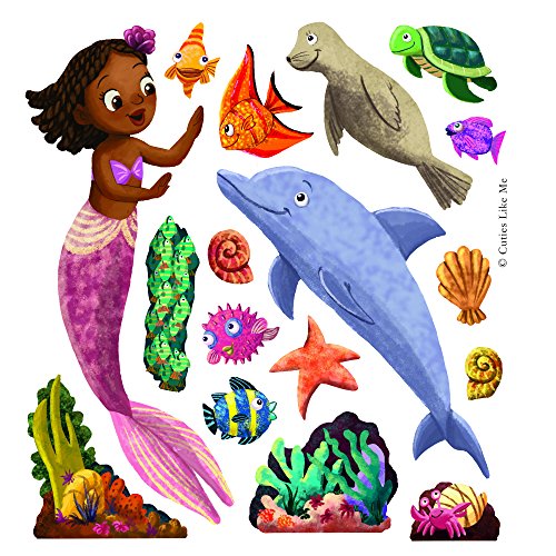 -. Feature : MERMAID NAUTICAL THEME: three happy brown mermaids are approx 10.5 inches, dolphins are 7.5 and 9 inches, fish, tropical shells, seahorse, turtles, seals, and coral range from 2-3 inches; 46 decals in all. Artwork has matte finish / ADD DIVERSITY to any playroom, bedroom, bath room, doctor's office, hospital, preschool, kindergarten, classroom, or daycare with these adorable African mermaids and marine friends. One aquatic P.R.Incess has twists, and one little queen has a puff. Familiar faces can build self-esteem, confidence, and empowerment. / CONVENIENT PRE-CUT VINYL DECALS ARE EASY TO PEEL AND STICK to most smooth surfaces and won't fade. Teach your toddler colors, shapes, sizes, and sea animals while having fun. Make a mural and tell a story! These make thoughtful gifts and supplies for a birthday party / BEAUTIFUL TEMPORARY ART. These dark-skinned cuties can also be positioned on windows and mirrors to create fresh new under water scenes that update the look of your dorm, bedroom, bathroom. Great if you're moving in the near future as no wall repairs are needed. Won't leave marks when it's time to change your decorations. / INEXPENSIVE, FUN, COLORFUL WAY TO DECORATE without the mess and expense of paint or wallpaper or damaging nail holes. As wall art for your baby nursery the mermaids and ocean friends are easily relocated as your baby grows older.