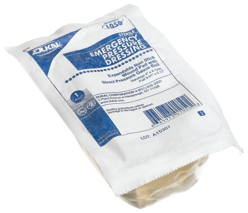 -. Title : First Aid Only Sterile Emergency Pressure Dressing, Expandable, Non-stick Wound Pad With Direct Pressure Gauze Roll (Pack of 4)