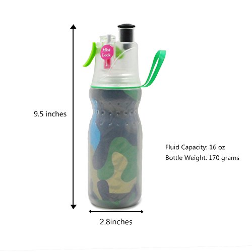 2 in 1 Drinking and Misting Spray Function,Unique MIST LOCK Function, when you need to put the bottle on the inside of the travel bag, Use the fog lock to prevent water from overflowing the bag.