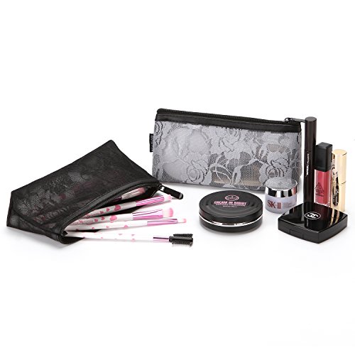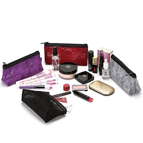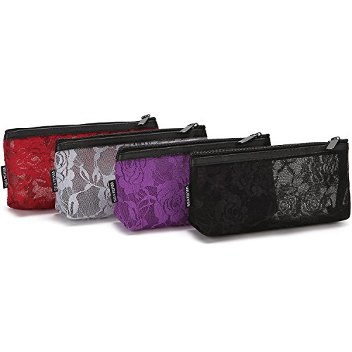 Sea Team Multicolored Portable Travel Toiletry Pouch Handy Lace Fabric Mesh Cosmetic Bag Makeup Organizer with Zipper, Set of 4