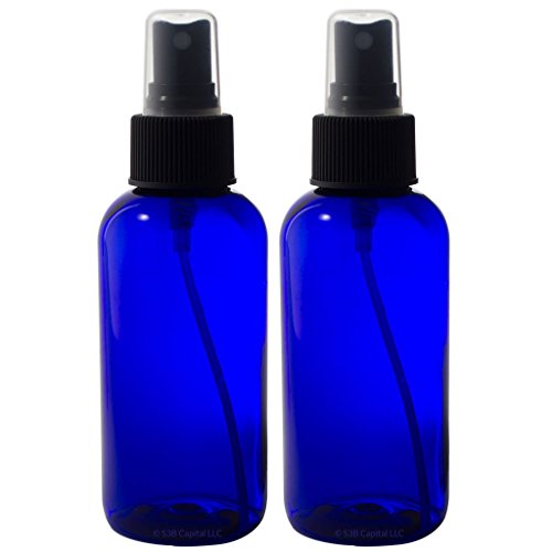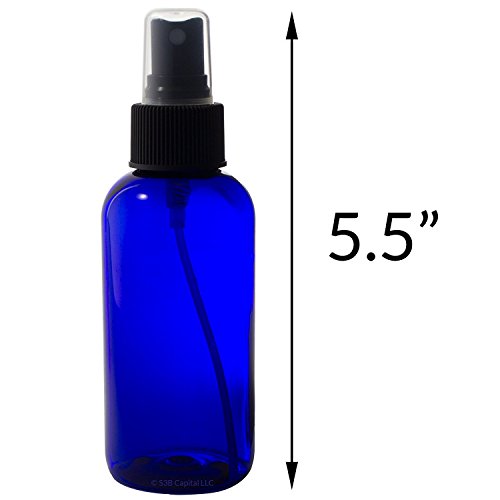 4 oz Cobalt Blue Glass Boston Round Fine Mist Spray Bottle (12 pack) + Funnel and Labels for essential oils, aromatherapy, food grade, bpa free