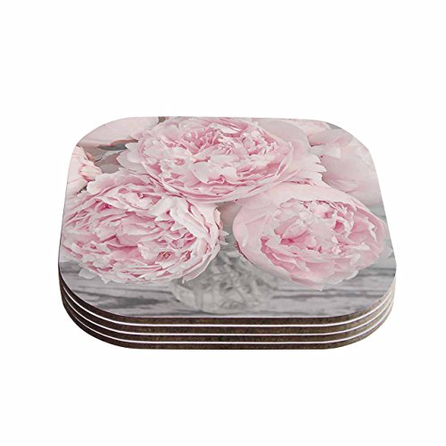 KESS InHouse Suzanne Harford "Pink Peony Flowers Floral Photography" Coasters (Set of 4), 4 x 4", Multicolor