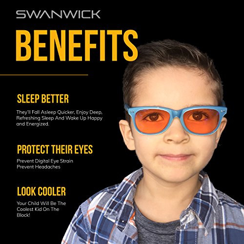 -. Feature : CALM THEM DOWN - Are your kids easily irritated, sometimes suffer lack of focus and attention, or have trouble sleeping? Have them wear Swannies blue-light blocking glasses to protect them. / PROTECT THEIR EYES - Orange lenses block more blue light than any other computer reading glasses. Anti-Reflective + Anti-Glare lens coating prevents insomnia, irritation, headaches, eye fatigue and macular degeneration. / LOOK COOLER - Most computer glasses and video gaming glasses don't look cool. They're clunky, unstylish and make kids look weird. With Swannies, your children will look cute and stylish. / ACETATE FRAMES - Environmentally-friendly alternative to petroleum-based plastics. Strong, lightweight and flexible, can be shaped to your child's face for a perfect fit and be readjusted. / FDA Registered - Swanwick Sleep is fully registered with the Food and Drug Administration to import Class I Medical Devices.
