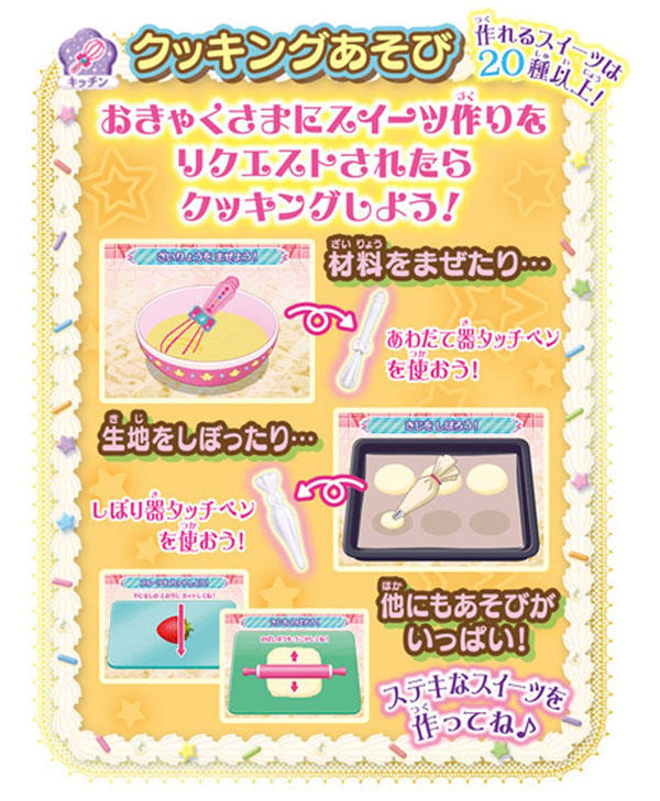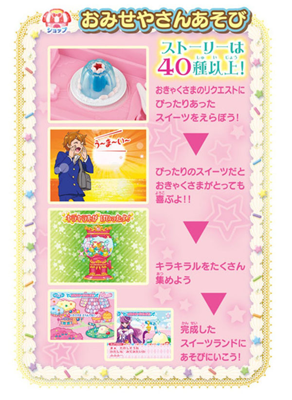 애니메이션에 등장하는 스윗츠 "반짝 반짝 파티스리"과 같은 디자인 가게 놀이를 즐길 수 있는 액정 아이템!