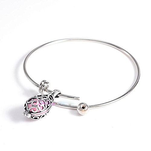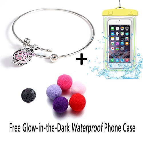 Essential Oil Diffuser Bracelet Aromatherapy Stainless Steel Expandable Bangle with Locket Pendant + 1 Lava Stone + 5 Refill Cotton Balls