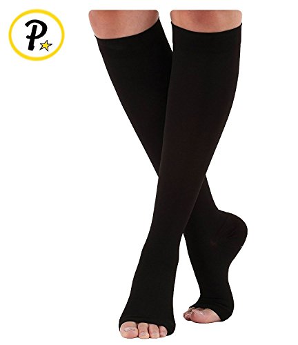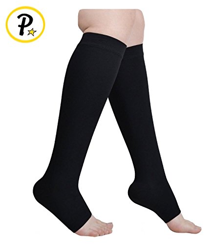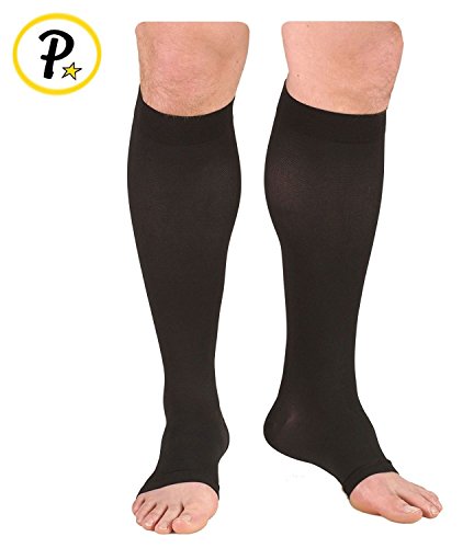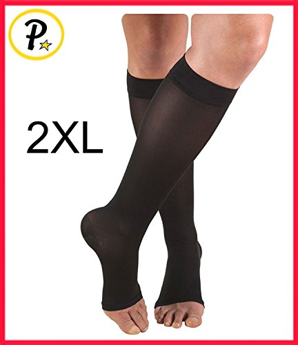 Presadee Traditional Open Toe 20-30 mmHg Compression Socks Medical Swelling Relief Leg Calf Circulation Support (2XL, Black)