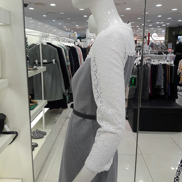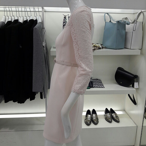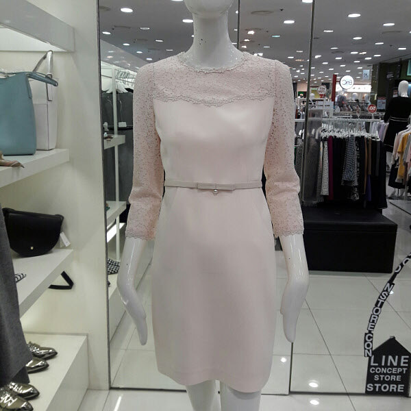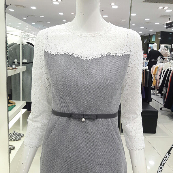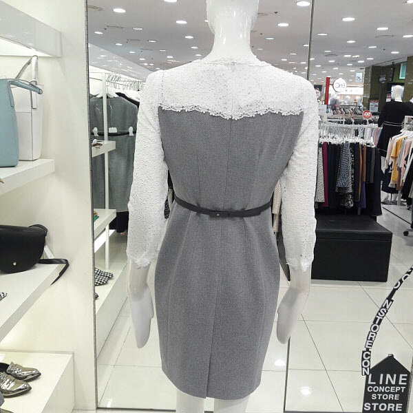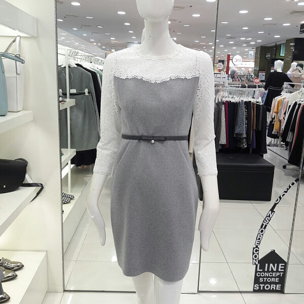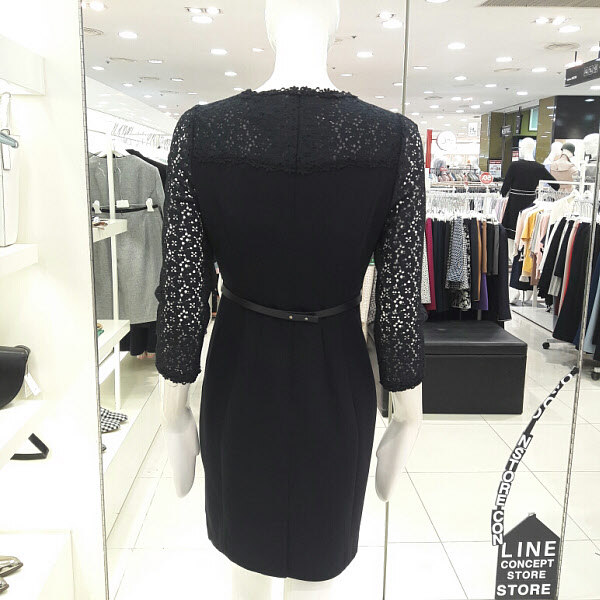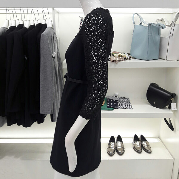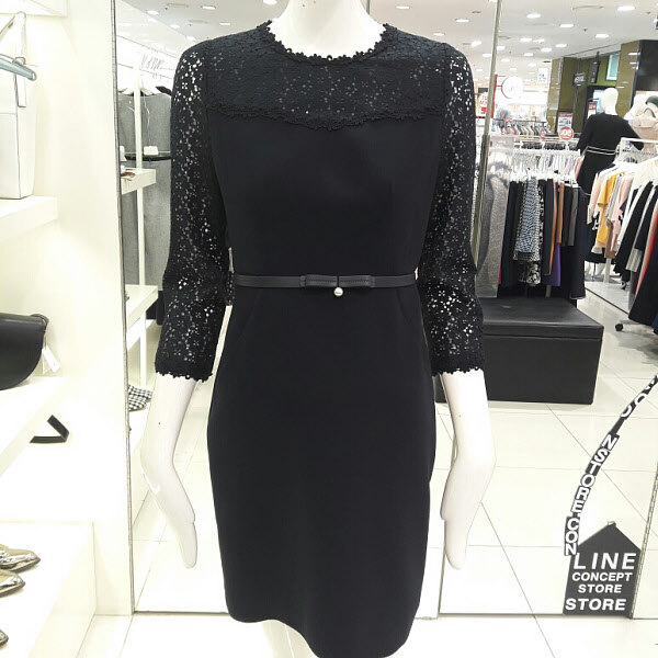레이스가 예쁜 럭셔리 원피스입니다 벨트라인이 허리를 슬림하게 보이게하구요 라운드넥 부분과 팔부분에 레이스가 세련되면서도 여성스러워요 트렌치나 자켓이랑 연출하기 좋구요 결혼식 패션으로 추천합니다